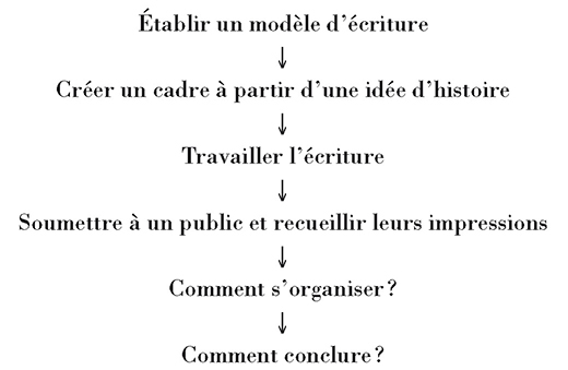 Ce travail de réflexion est important pour donner aux élèves le sentiment de devenir eux-mêmes des écrivains et de maîtriser leur rédaction. De là est sorti un schéma de rédaction :
