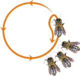 Elles peuvent donc intérioriser la position exacte d’une source de nourriture par rapport au soleil et reproduire cette position en dansant sur le parois vertical de la ruche, dont les alvéoles sont orientées par rapport au soleil. Elles savent aussi, on l’a vu, quelle distance il faut parcourir pour trouver cette source, grâce au nombre d’oscillations effectuées pendant la partie droite de la danse. Par ailleurs, elles sont capables de mesurer le flux optique vu sur leur chemin, c’est à dire de mesurer le nombre de changements visuels le long d’un trajet. Elles peuvent donc corriger leur direction en fonction du temps qui s’écoule lorsqu’elles sont hors de la ruche.