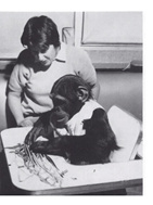 Aux Etats-Unis, entre 1966 et 1973, une série d’expériences menées avec des grands singes – chimpanzés, gorilles, bonobos – a bouleversé les à priori scientifiques sur la possibilité du langage chez les animaux. On avait essayé plusieurs fois sans succès d’apprendre le langage parlé à des grands singes. Mais, en 1966, Béatrice et Allen Gardner, un couple de psychologues à l’Université de Reno, dans le Nevada, ont entrepris d’apprendre à un chimpanzé nommé Washoe à communiquer à l’aide du langage des signes américain (American Sign Language ou ASL). Au bout de quelques mois, Washoe utilisait plus de 100 signes de l’ASL, d’après le couple, et avait développé des capacités conversationnelles certaines.[1] D’autres expériences similaires ont été menées à cette époque, toutes basées sur les principes de la théorie Skinnérienne du comportementalisme, c’est-à-dire en conditionnant les animaux par des punitions et des récompenses.